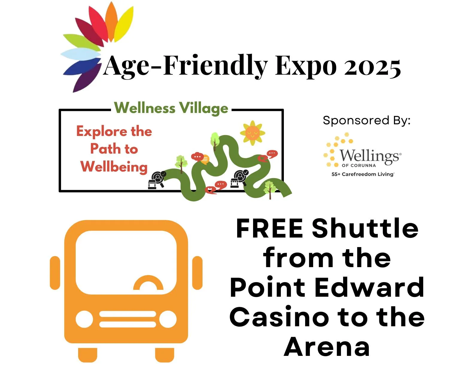 Attending the Age-Friendly Expo next week and unsure about parking? You can park and shuttle to the event from the Point Edward Casino directly to the arena! Their FREE shuttle will be operating all day.