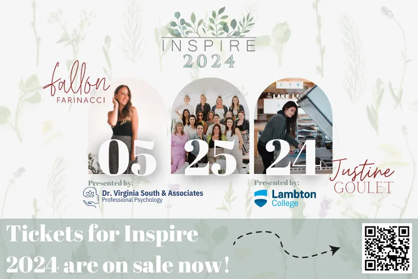 Inspire features incredible guest speakers, delicious food, a diverse vendor's market showcasing local small businesses, and seeks to honour women and gender diverse people who are making a big impact in our community. On Saturday May 25, 2024, Inspire 2024 will feature local vendors, catered lunch, influential speakers Fallon Farinnaci and Justine Goulet, gifts, prizes, awards, music, self-care and much more!