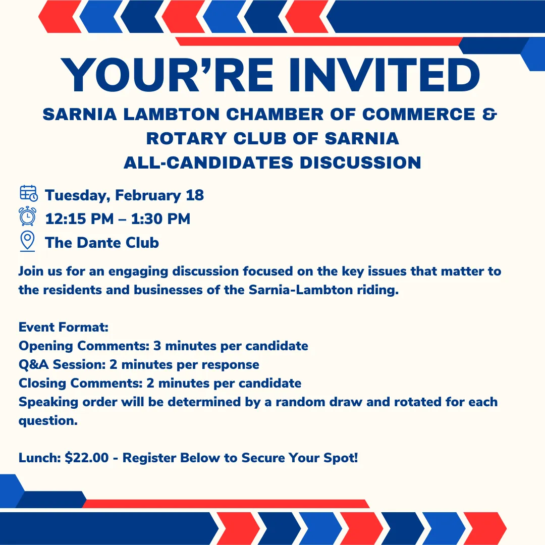 Be part of an insightful discussion addressing the key issues that impact the residents and businesses of the Sarnia-Lambton riding.