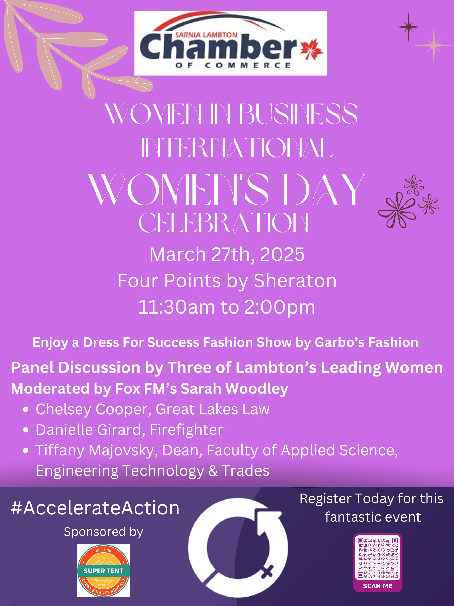 Join us at the Four Points by Sheraton for a special event honoring the achievements of women, proudly sponsored by Super Tent Sarnia.