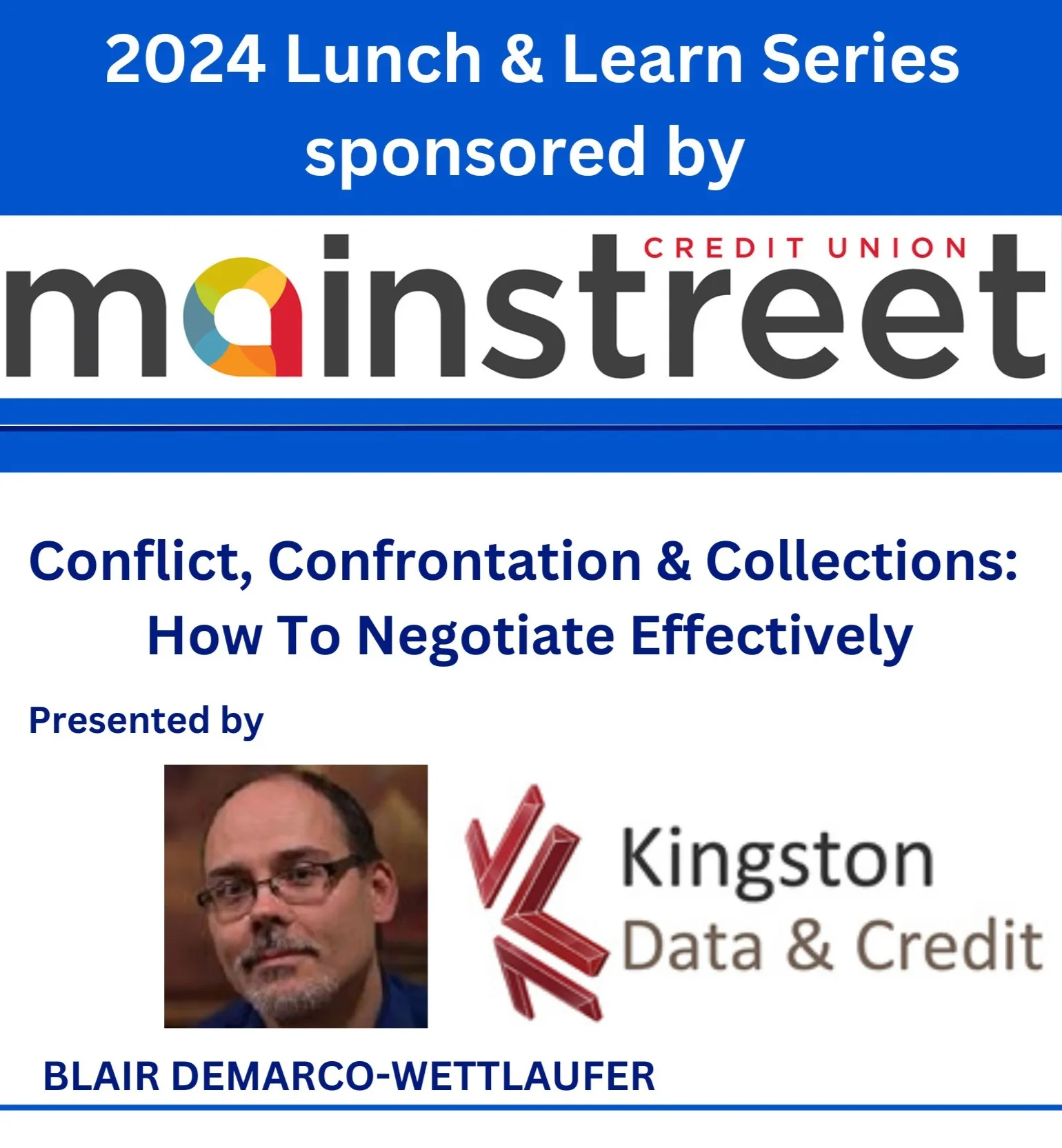 Conflict, Confrontation & Collections: How To Negotiate Effectively In this lunch and learn session, sponsored by Mainstreet Credit Union, we will meet with a collections business owner with 32 years' experience and will talk about diffusing conflict, negotiating stressful situations with collaborative language, and how to keep the butterflies in your stomach down when dealing with difficult clients.