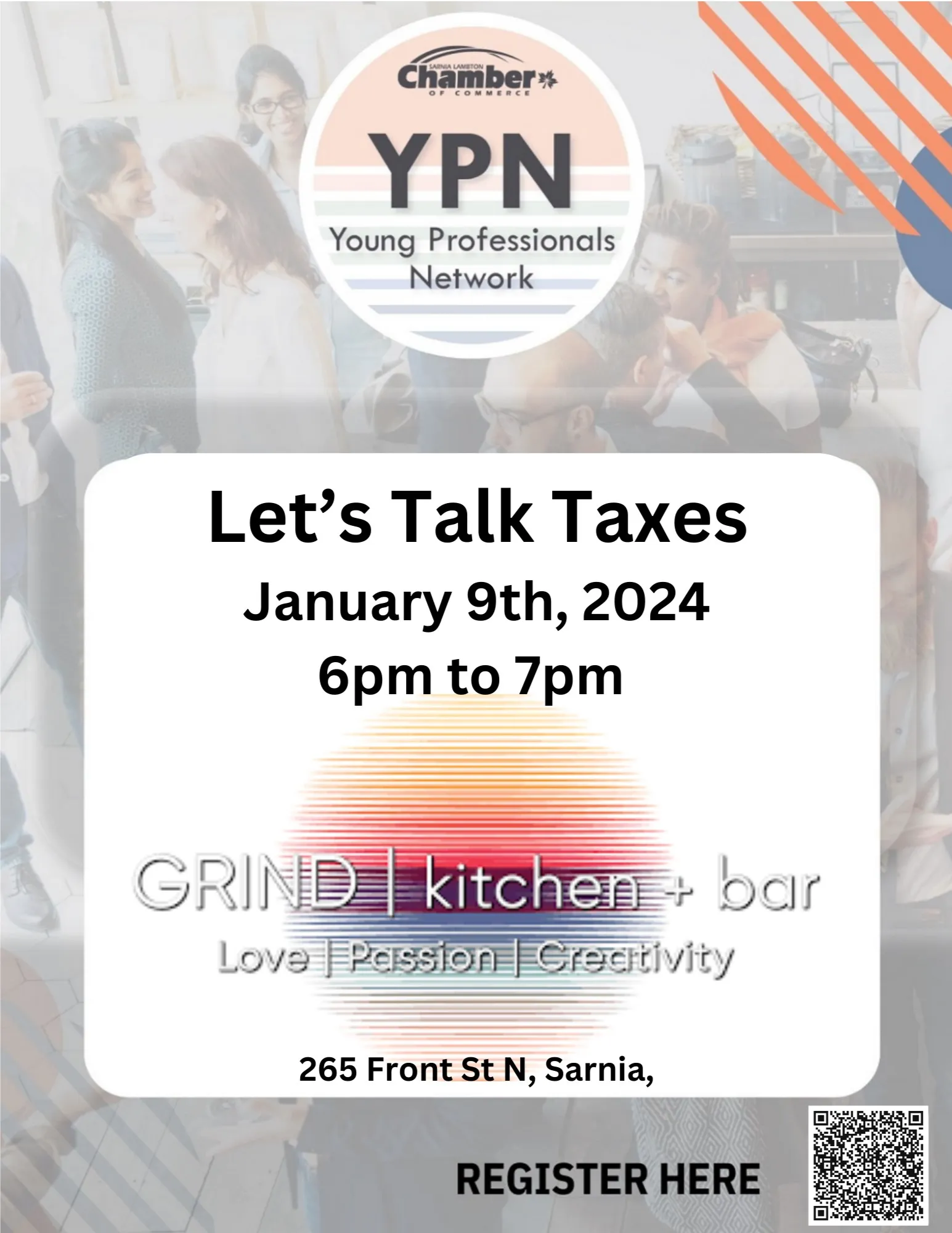 If you are under 40, register today and secure your spot at Grind Kitchen + Bar, January 9th, from 6pm to 7pm.