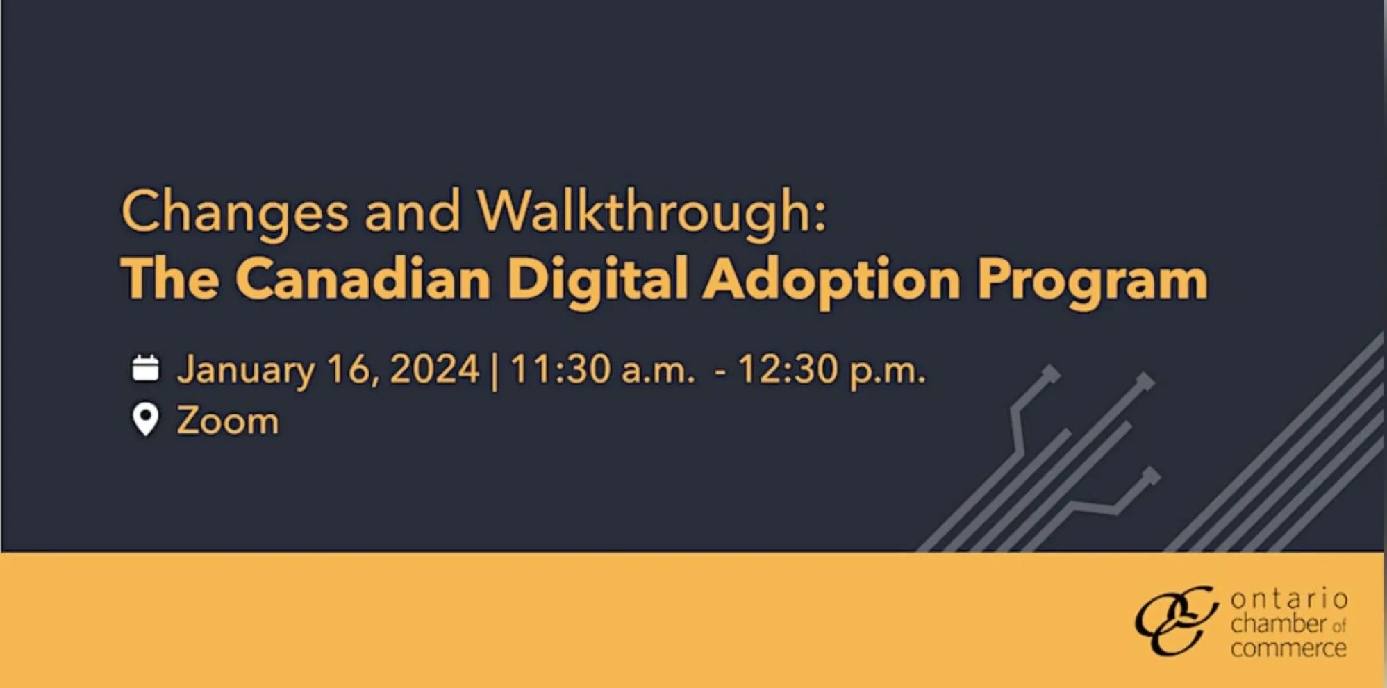 The Ontario Chamber of Commerce's (OCC) Canadian Digital Adoption Programs (CDAP) Team is hosting a free webinar on January 16 from 11:30 a.m. to 12:30 p.m. to discuss the recent changes to the program, followed by a general discussion on how to apply to the program successfully. Don't miss this opportunity to take your business to the next level!