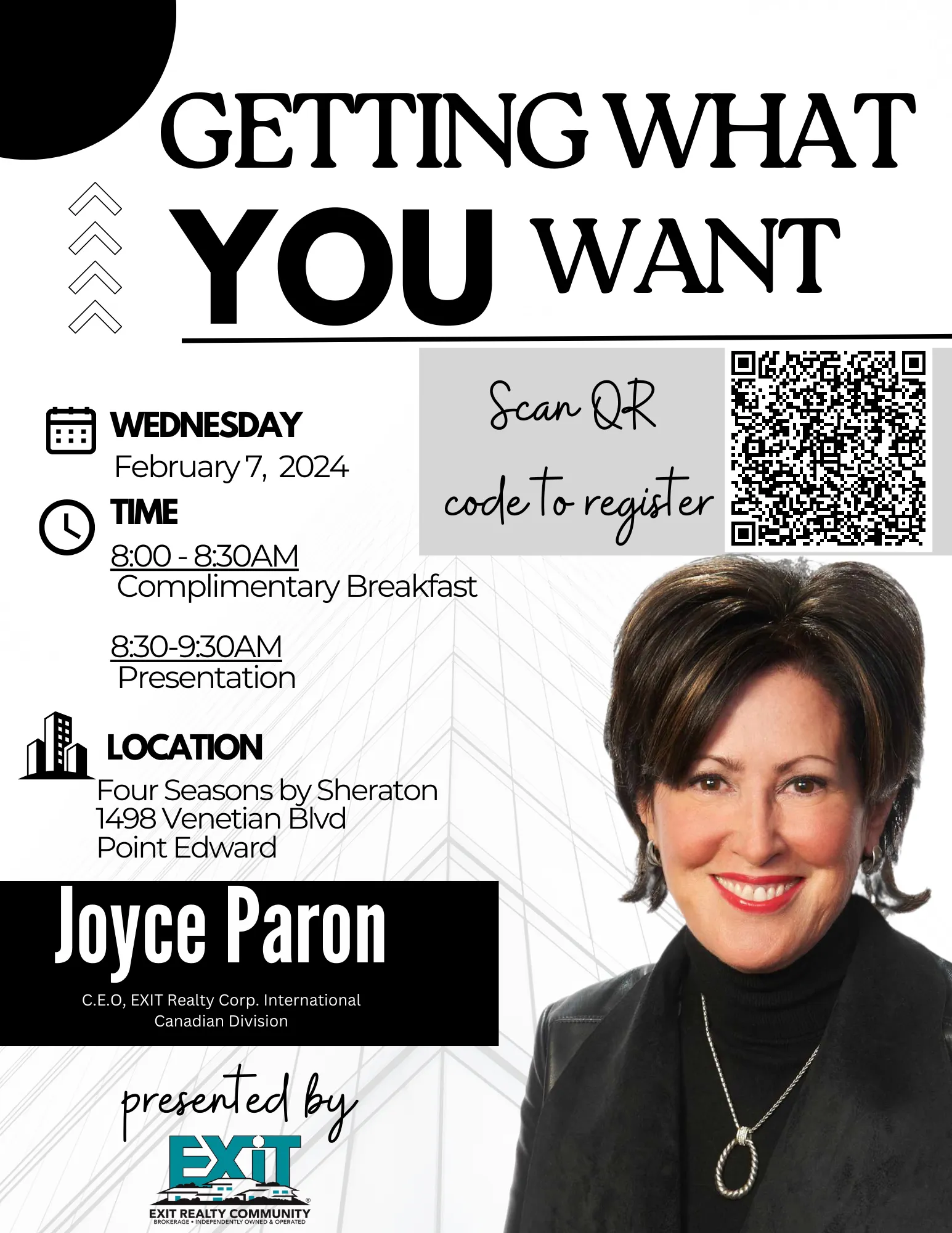 Join Joyce Paron and the Exit team for an empowering presentation. Gain insights into manifestation, goal setting, and personal empowerment to turn your dreams into tangible achievements.