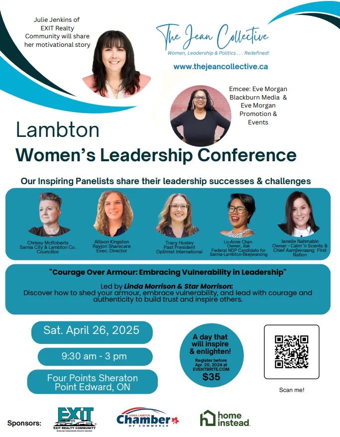 Ready to lead with courage and authenticity? Join us on April 26, 2025, for the Lambton Women’s Leadership Conference! Hear from inspiring leaders like Chrissy McRoberts and Janelle Nahmabin.