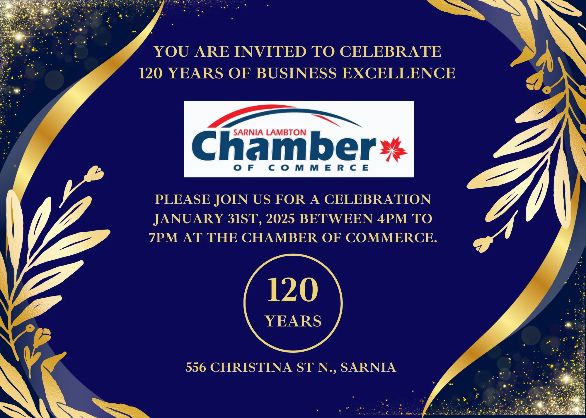 We’re thrilled to invite you to a special event honouring the Chamber of Commerce’s incredible 120-year legacy of supporting our business community! Come enjoy delicious appetizers, a cash bar, and great company.
