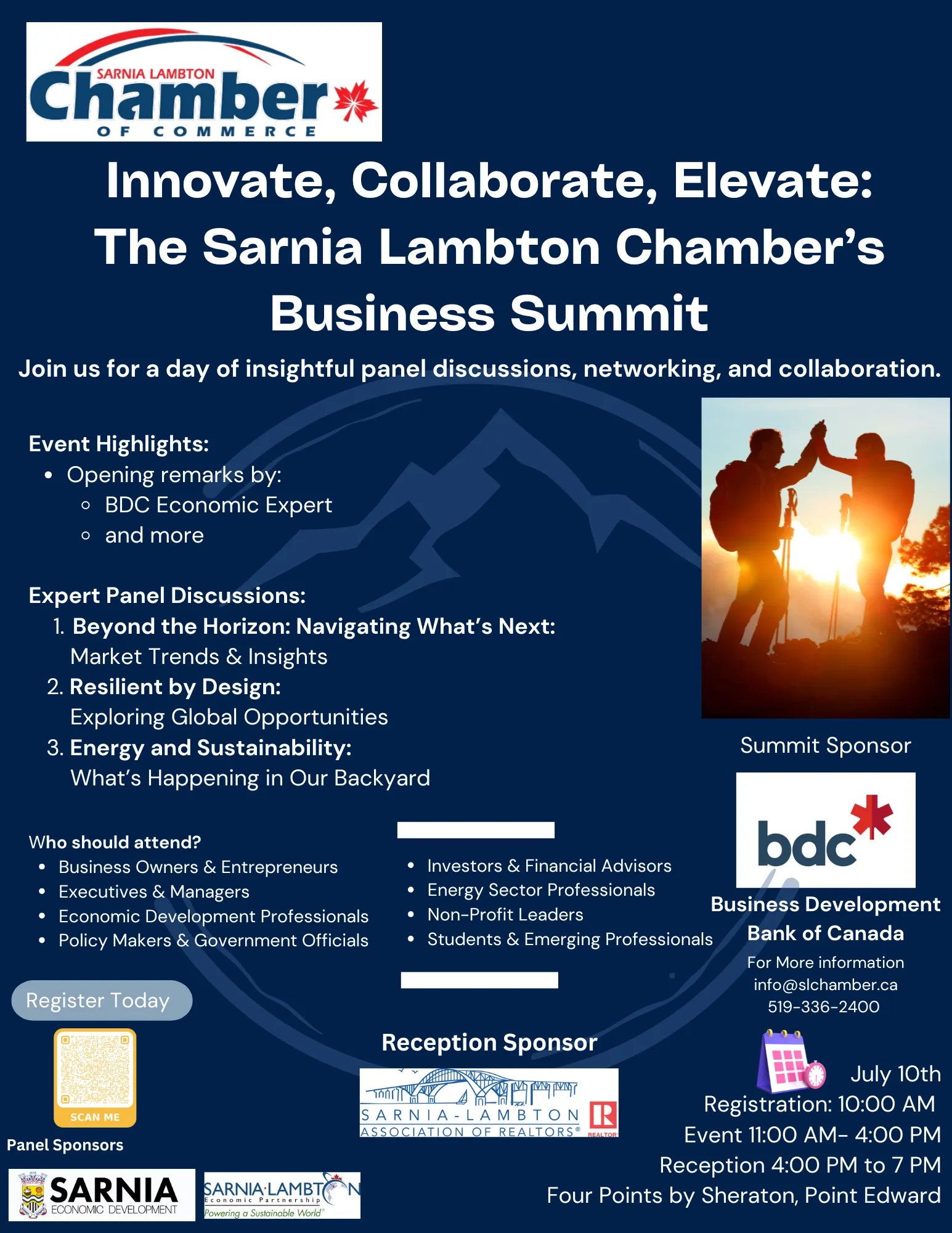 Join us for the Sarnia Lambton Chamber’s Business Summit, presented by BDC, on July 10 at the Four Points by Sheraton!
