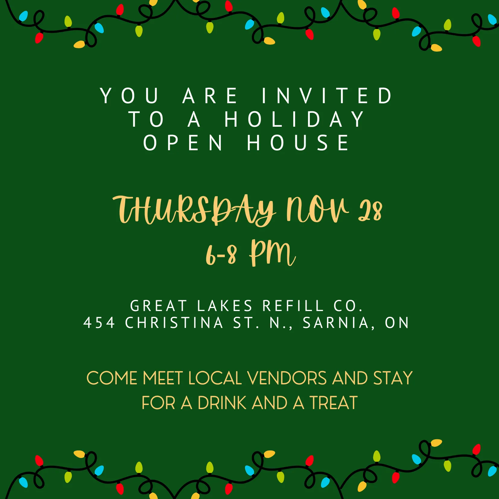 Great Lakes Refill Co. is holding a Fall Open House on Thursday November 28 from 6-8 pm. Stop by for a festive drink and a treat, and see what new items they have in the store for that special person on your list.