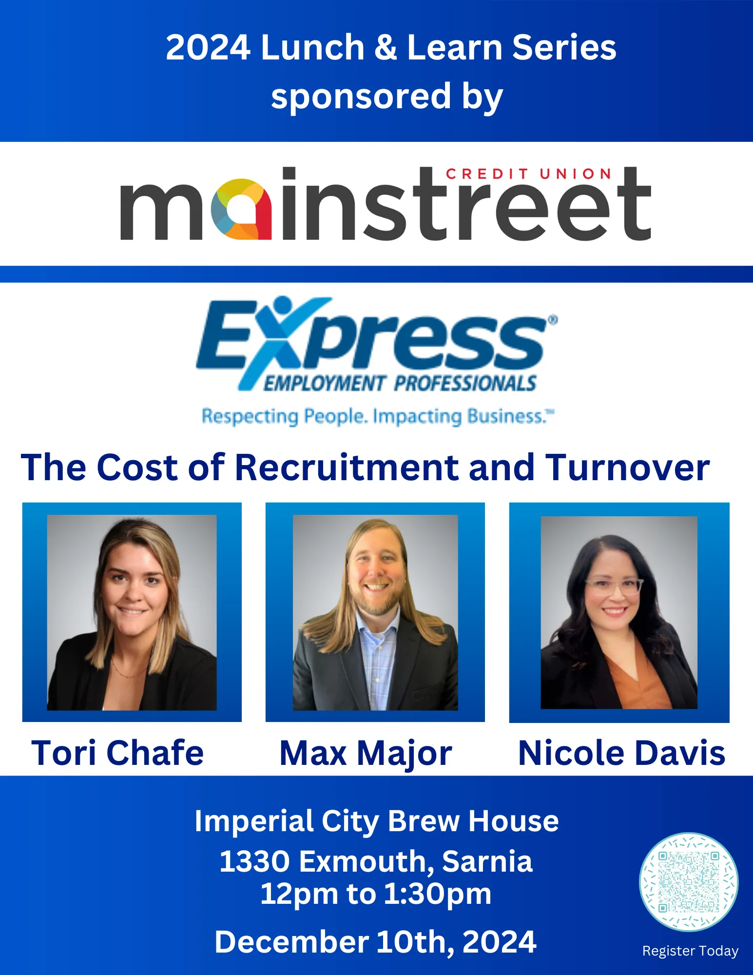 You're invited to an insightful Lunch & Learn session featuring Tori Chafe, Max Major, and Nicole Davis from Express Employment Professionals. Together, they’ll explore The Cost of Recruitment and Turnover and its impact on your business.